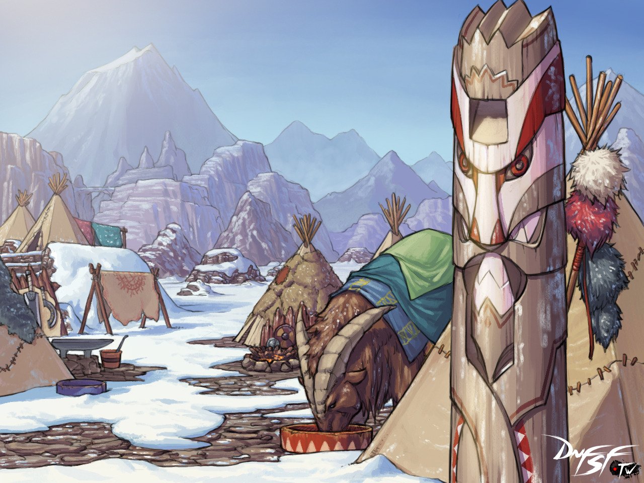 但是依然有一些民族群居在这里,其中以班图族的势力最为强大。每三十年,冰龙斯卡萨从沉睡中苏醒,班图族人就必须翻越斯特鲁山脉到达大陆腹地,以解决冰龙带来的严寒与饥荒问题。